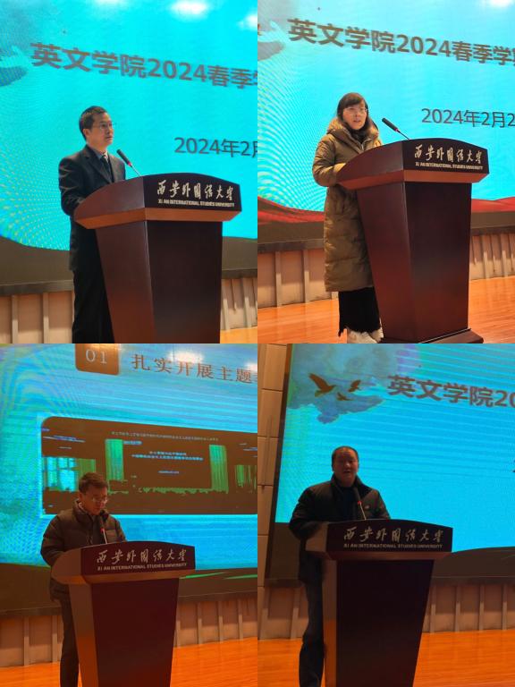 各分管院领导依次总结2023年的工作,对2024年各项工作进行安排。党委副书记马文静代表学院领导班子,围绕主题教育、党建工作、学科专业建设、科学研究、人才培养、国际交流、社会服务等十个方面,总结了2023年的工作。并对自己分管的学生工作、工会工作进行安排。副院长赵永刚对2023年研究生教育教学以及科学研究工作做了简要总结,并对2024年研究生招生、研究生中期考核与开题等工作进行安排。副院长雷茜总结了2023年的本科教学工作,并对新学期开学工作做了安排。她重点强调本科教学审核评估的重要性,并进行了详细的安排。