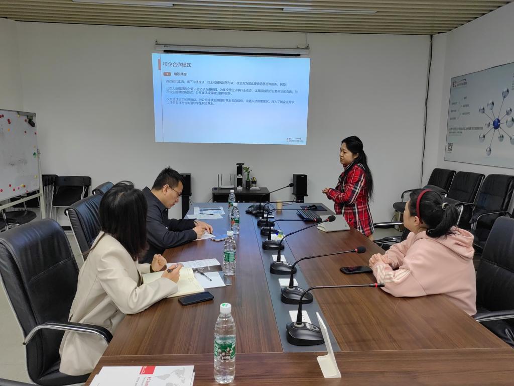 在成都创思立信信息技术有限公司,校企合作负责人杨玉杉介绍了公司理念文化、企业建构、实习生培养模式等方面情况,人力资源经理林玲表示愿意加强校企合作交流,为学生提供良好的实习实践教学平台。双方就学生就业实习、组织校园专场招聘等工作展开了深入交流。