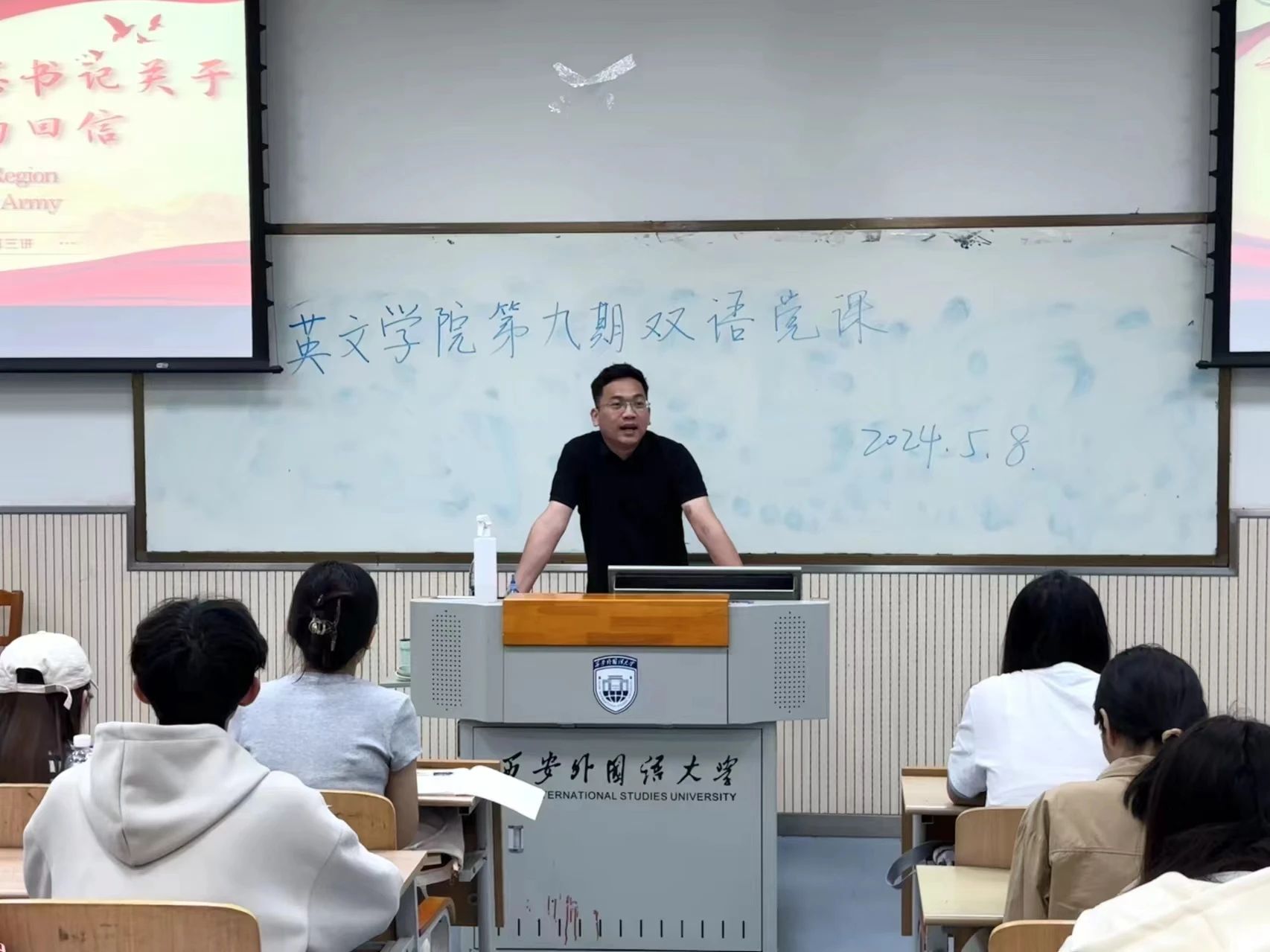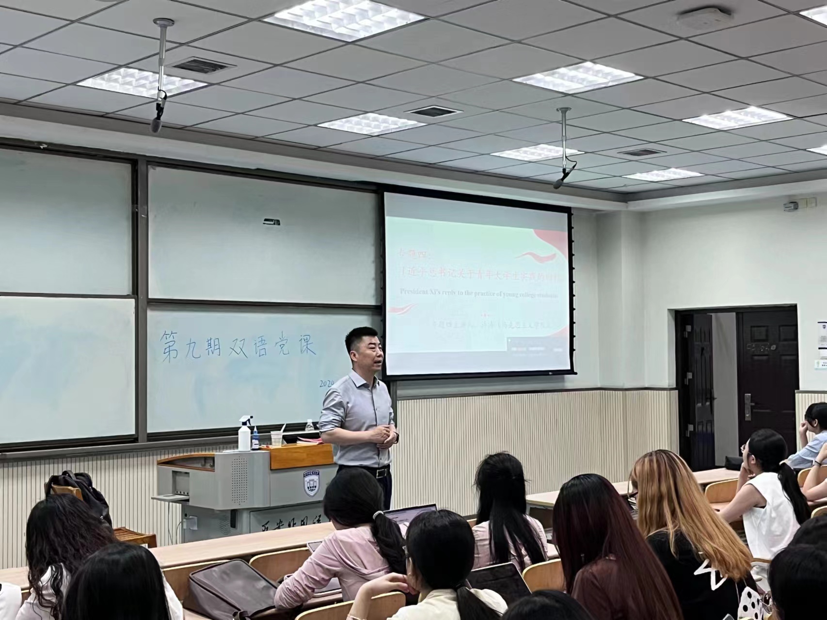 第9期“牢记回信精神 凝聚奋进力量”中英双语党课,本次培训共分为习近平总书记关于坚定理想信念、大学生就业、青年大学生实践、归国留学生的回信等四个专题,共计300余名学生党员参加培训。