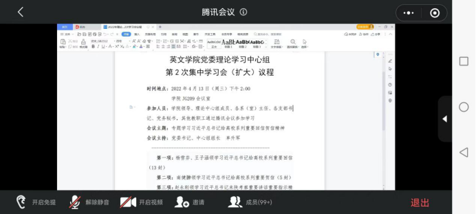召开党委理论学习中心组(扩大)第2期学习会暨教职工第5次政治理论学习会,专题学习习近平总书记给高校系列重要回信贺信精神,中心组成员在教学楼G区209会议室参加,学院其他教职工通过腾讯会议线上学习,会议由党委书记、中心组组长单升军主持。