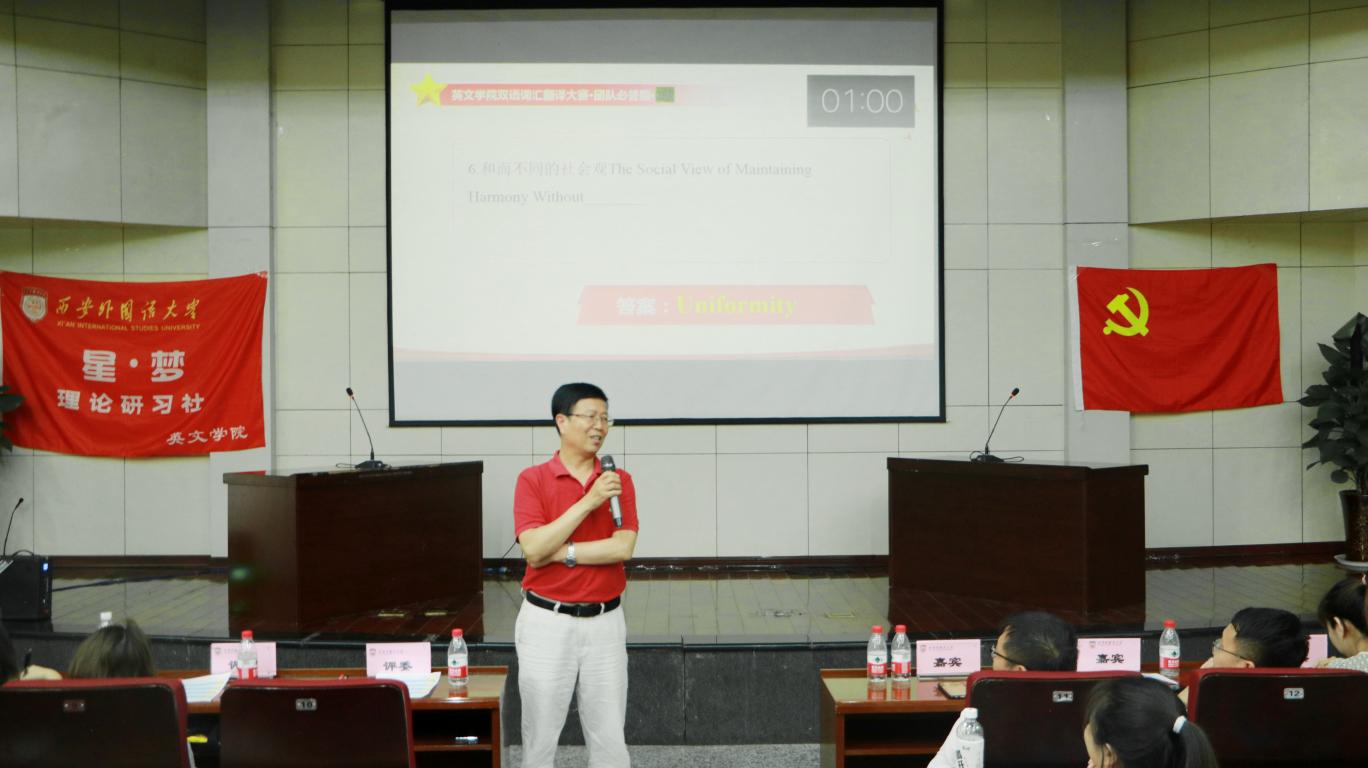 习近平总书记曾指出,“要炼就‘金刚不坏之身’,必须用科学理论武装头脑,不断培植我们的精神家园”。新时代的外语人才,不仅需要学好专业知识,掌握过硬的英语本领,更需要以国际化的视野承担起中华民族伟大复兴的使命与担当。希望通过本次学习贯彻习近平新时代中国特色社会主义思想双语词汇翻译大赛,鼓励广大青年将思想理论学习和英语专业提升有机结合,真正做到深学细领、学通弄懂,在奋进中汲取智慧力量!