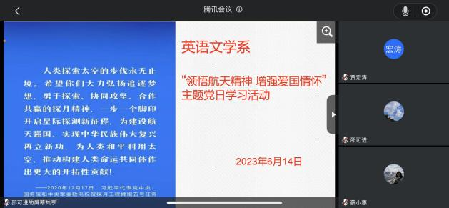 英语文学系党支部召开“领悟航天精神 增强爱国情怀”主题党日活动