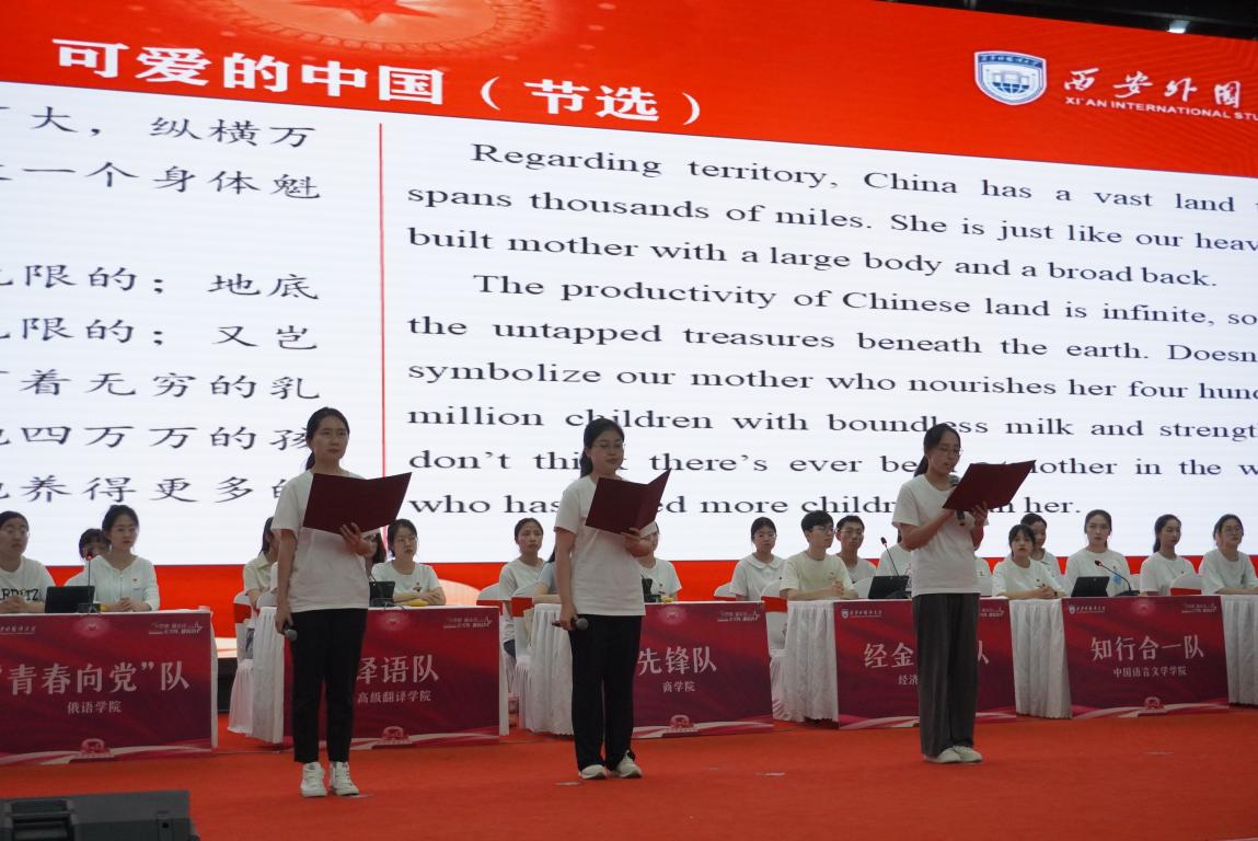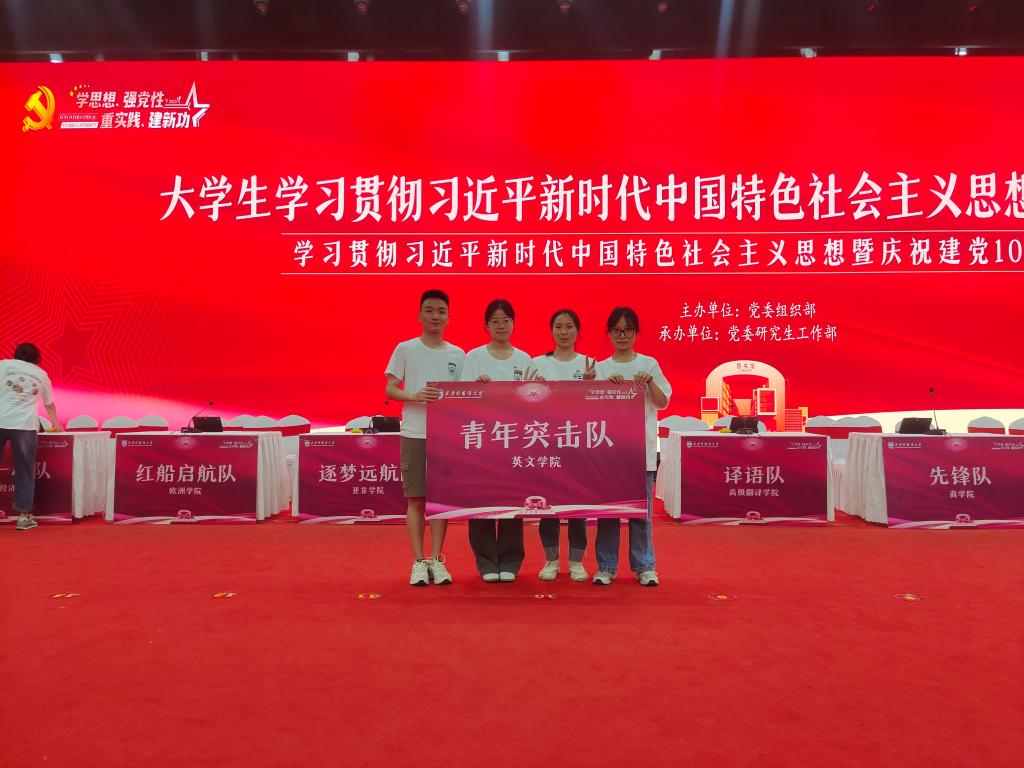 经过各学院初赛选拔,共有15支队伍60名选手进入决赛展开激烈角逐。决赛设置必答题、抢答题、风险题三个阶段,穿插多语种朗读习近平著作节选。香香漫画 2022级研究生刘宇琨、胡艳涛、丁泓月三人在决赛开场用中英文诵读了方志敏《可爱的中国》(节选)。经激烈角逐,香香漫画 由2022级研究生顾金燕、陈浩宇以及2020级本科生同婉莹、付小影组成的“青年突击队”荣获三等奖。