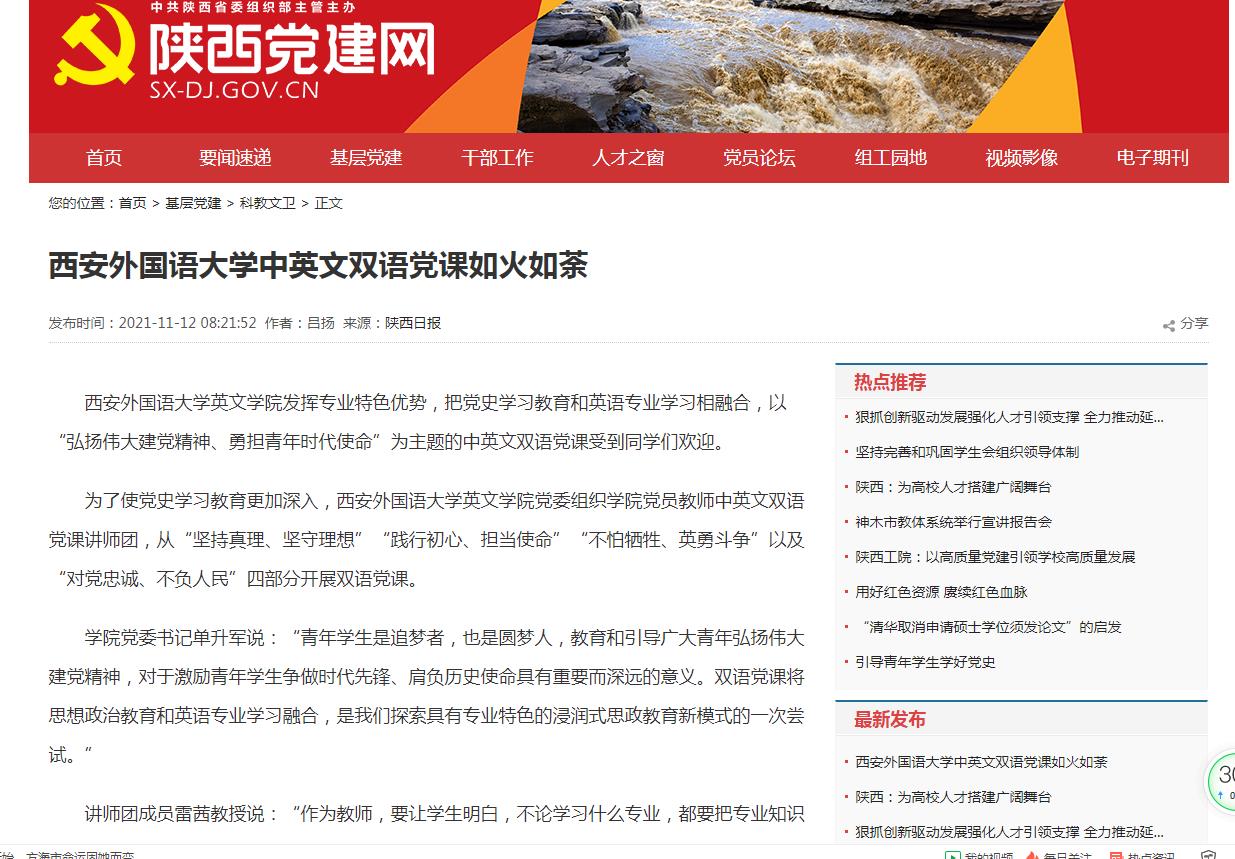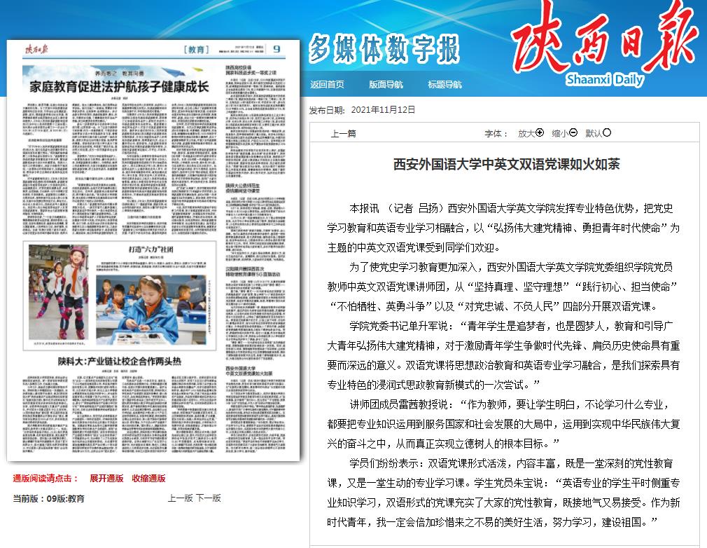 发挥专业特色优势,把党史学习教育和英语专业学习相融合,以“弘扬伟大建党精神、勇担青年时代使命”为主题的中英文双语党课受到同学们欢迎。