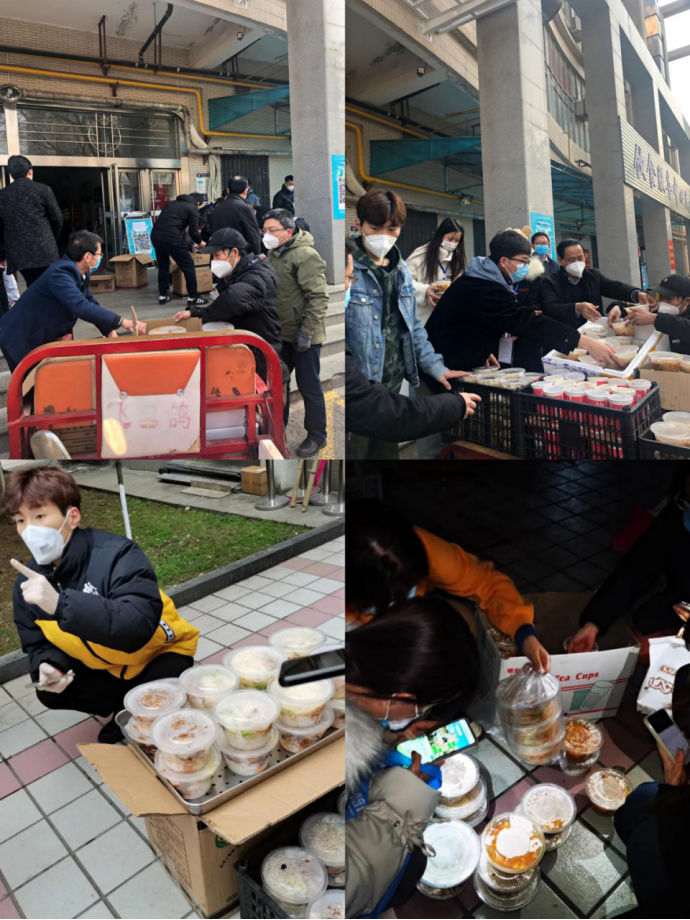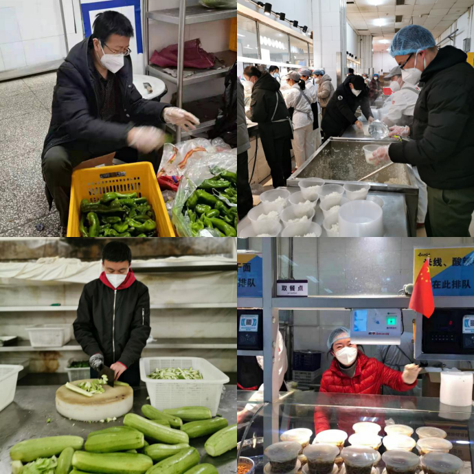 疫情突袭,很多人员被隔离在校外,各项工作人手紧缺。关键时刻,学院党委发出号召,行政干部、辅导员、专业课教师纷纷主动请缨,积极参与研究生监考、后勤帮厨、餐食运送和核酸检测等工作。硕士研究生招生考试“党员先锋突击队”累计50余名师生党员报名参加,其中徐斌老师参与酒店隔离考场监考任务,杨涛老师和马文静老师深入封控区,确保考研学生顺利参加考试。全院2600余名学生配送三餐的艰巨任务也顺利完成,让学生吃上热乎饭菜,感受学院爱与温情。