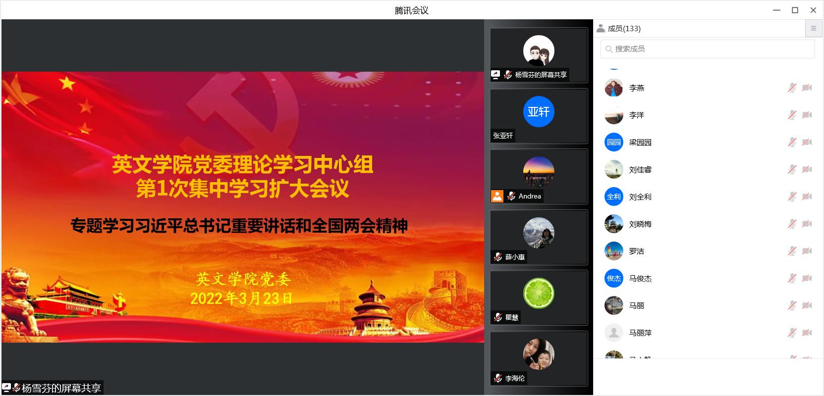 通过线上方式召开党委理论学习中心组第1次集中学习会暨教职工第3次理论学习会,专题学习习近平总书记重要讲话和全国两会精神,中心组成员和全体教职工通过腾讯会议参加,会议由理论学习中心组组长、党委书记单升军主持。