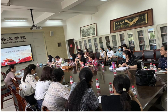 2022年6月8日下午,语言学系党支部在教学楼G209开展“坚持立德树人 推进课程思政”主题党日活动。学院党委书记单升军,支部全体党员教师参加,系内其他非党员教师列席,会议由支部书记李晶晶主持。