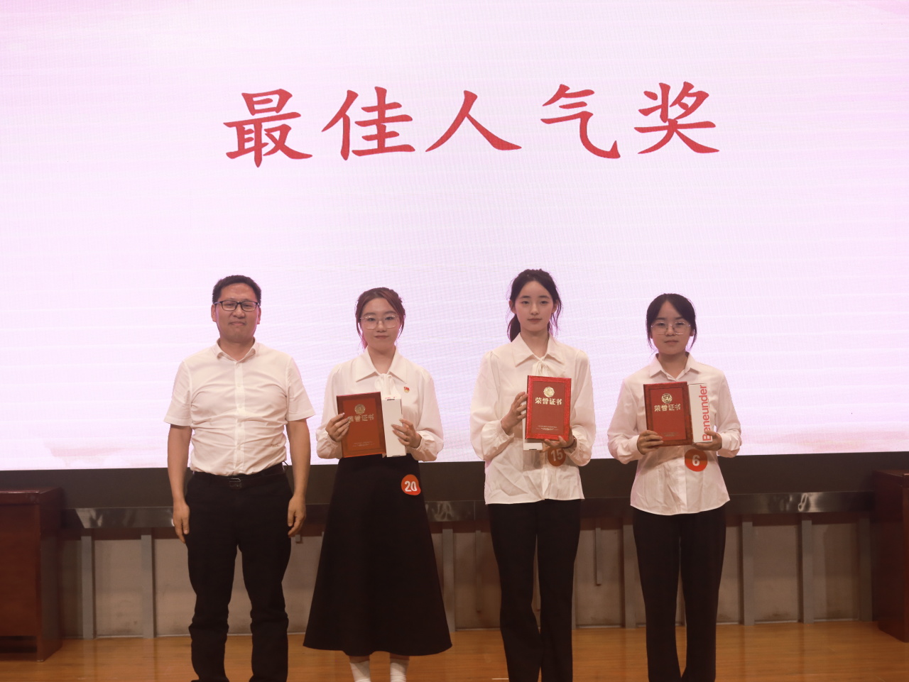 与此同时,现场设计了观众参与环节,根据全场人气投票,最终前三名的获奖选手分别是研究生党员代表郭瑞红、本科生党员代表张蕾和李敬谦。