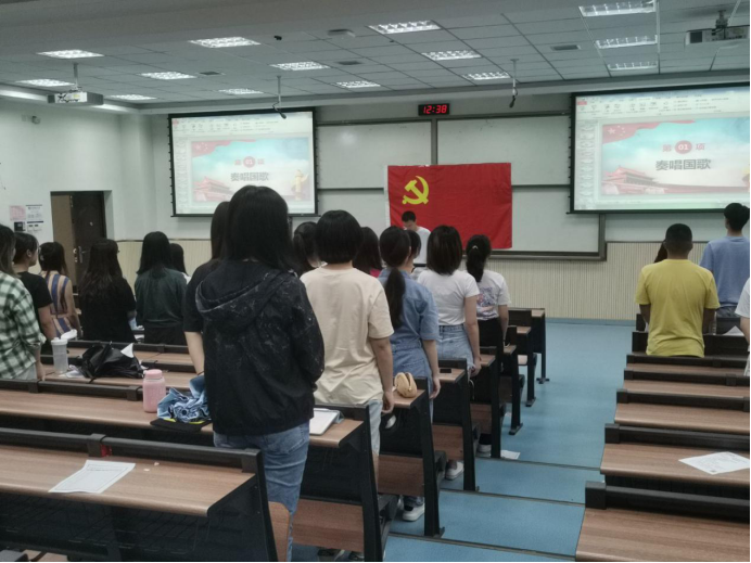 最后,王成晨带领全体与会党员重温入党誓词“我志愿加入中国共产党,拥护党的纲领,遵守党的章程……”全体党员在党旗面前高举右拳庄严起誓,表达对党的忠心。张君尧总结并提出三点要求:作为学生党员,一是要明确学生主体身份,聚焦主责主业。将学习摆在第一要务,积极参加学科竞赛,以赛促学;二是要充分发挥党员的先锋模范作用。以自身切实行动,贯彻落实习近平新时代中国特色社会主义思想,吸纳更多优秀青年加入党组织;三是要注重培养创新思维。鼓励广大学生党员积极参与创新创业类竞赛,以赛促练。
