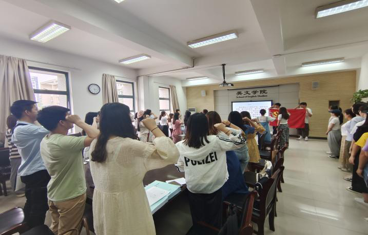 最后,支部宣传委员张雅楠带领全体党员以及新接收的预备党员宣读入党誓词,大家举起右拳,慷慨宣誓,立志为共产主义奋斗终身。
