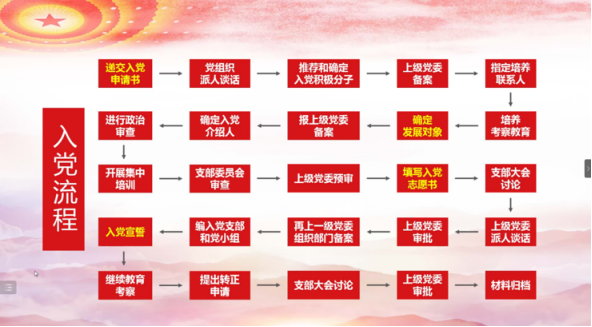 党课第一讲和第二讲依托腾讯会议于11月3日开展,分别由学院党务秘书王子涵和杨雪芬主讲。两位主讲老师以《中国共产党人的初心和使命》和《端正入党动机和发展党员流程》为题,从“中国共产党的成立”讲到“入党的正确动机和发展流程”,引导同学们端正入党动机,以实际行动向党组织靠拢。