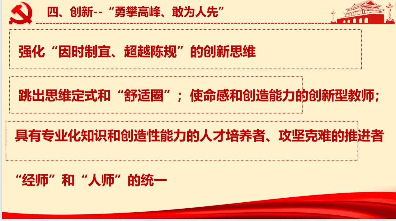 会议第二项,马丽萍以“弘扬教育家精神 努力做大先生”为题,为支部成员讲党课。百年大计,教育为本。教师是立教之本、兴教之源,一直以来,习近平总书记高度重视教师队伍建设,多次在不同场合强调教师工作的意义,对广大教师提出殷切期望。马丽萍从勤学、笃行、求是、创新四个层面分析了向教育家学习的路径,要牢记党和人民的重托,自觉保持躬耕教坛的敬业精神,时刻坚守立德树人的教育初心,立足教书育人本职,努力实现“知、情、意、行”有机融合,在强国建设和民族复兴的康庄大道上更好地发挥教育铸魂育人的作用。