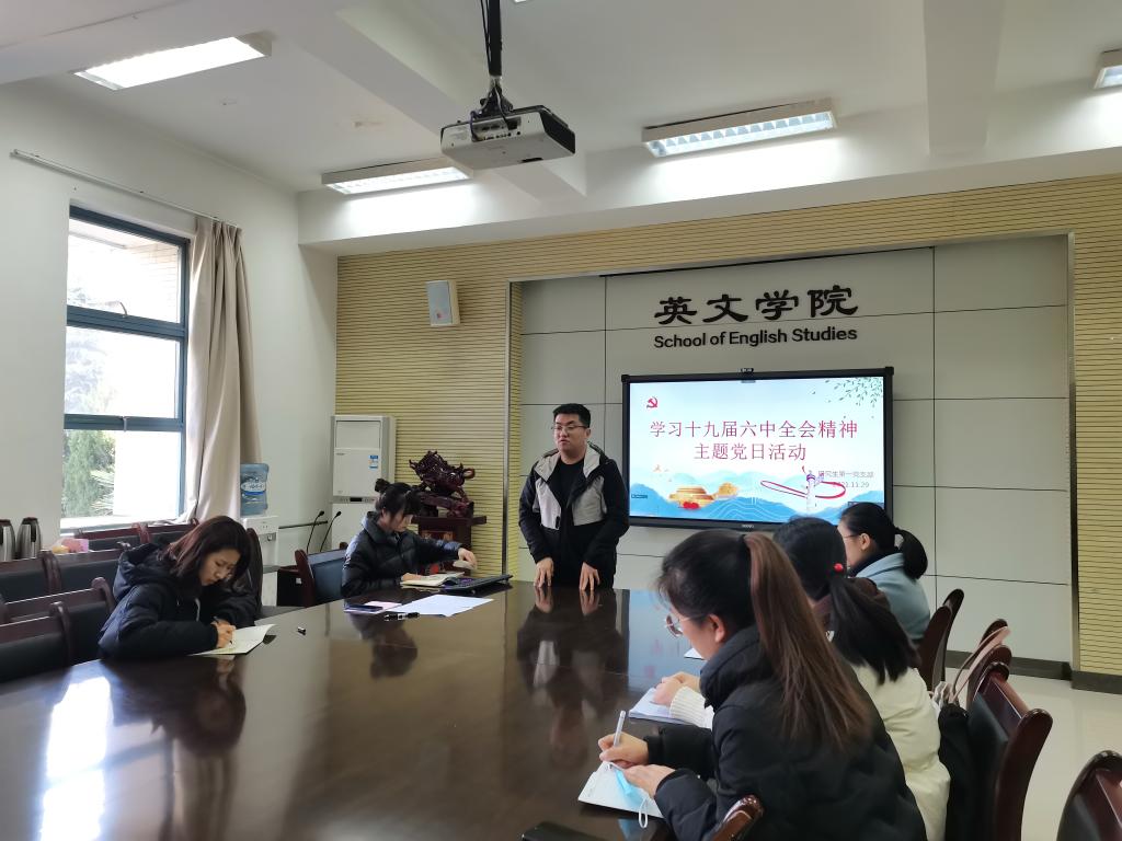 接着,支部副书记杨志芳播放视频《历史是怎么告诉未来的?》,进一步引导大家深刻理解党的十九届六中全会精神,为实现第二个百年奋斗目标,全党同志应勿忘昨天的苦难辉煌,无愧今天的使命担当。最后,李永强针对近期的就业情况,传达了学院招生就业会的精神,强调大家要认清就业形势,分析自身条件,积极就业,同时对各党小组的就业帮扶工作予以表扬。