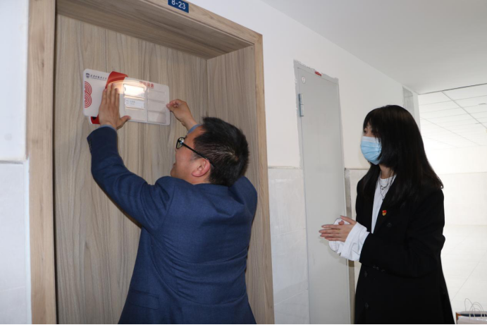 共有本科生党员宿舍78间,研究生党员宿舍65间。在现场,与会老师为其中10间党员宿舍进行了现场挂牌,并开展了宿舍走访。会后,各支部也将分别组织不同形式的学生党员宿舍挂牌活动。通过 挂牌,既有助于提高学生党员的党员意识、责任意识和先锋模范意识,发挥引领作用,也能通过亮明身份,自觉接受师生监督,同时,还有利于带动全体同学共创和谐文明向上的文化氛围。