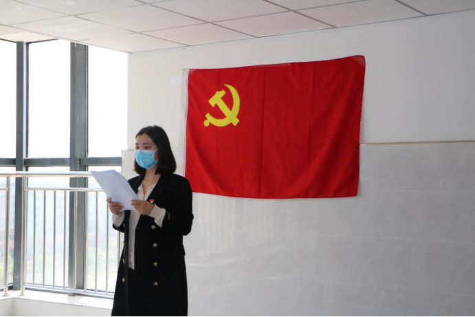 接下来,全体党员在研究生第六党支部书记冀婷的领誓下,面向鲜艳的党旗,集体宣誓,发出了“亮党员身份,树先锋旗帜,做先进表率的青年声音”。