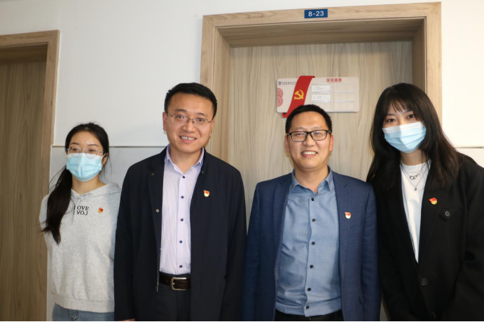 于2022年4月20日下午在7号学生公寓举办“亮党员身份,树先锋旗帜”主题党日活动暨学生党员宿舍挂牌仪式。党委书记单升军、党委副书记马文静、党务秘书、学生党支部书记、党员代表以及挂牌宿舍学生代表参加仪式。仪式由马文静主持。