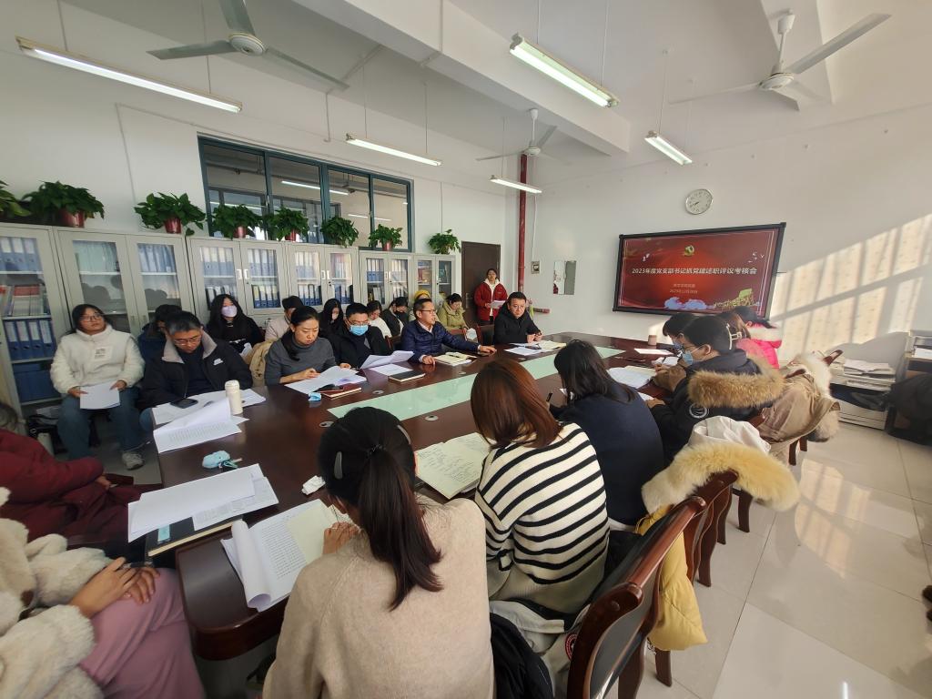 随后,开展党支部书记抓党建述职评议考核大会。会前,学院党委认真准备,就做好党支部书记述职评议工作进行了统一安排部署,开展了深入了解调研,制定了工作方案。20个党支部书记根据要求,进行了认真总结,并提交了书面述职报告。语言学系党支部书记李晶晶、英语文学系党支部书记贾宏涛、本科生第一党支部书记李璇、本科生第三党支部书记刘喆和研究生第二党支部书记郭慧敏等5个党支部书记围绕2023年支部建设、开展学习情况、组织生活情况、党员教育管理、工作成效、存在问题以及下一步改进思路和举措等方面进行了现场述职。参会人员认真听取和查阅述职报告,并根据综合情况,对各支部进行了逐一测评投票。