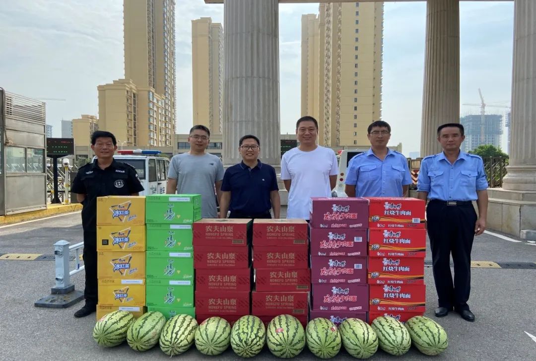 全体教职工对保卫处职工送去清凉和问候,嘱咐他们在坚守岗位的同时也要保重身体,防暑降温。