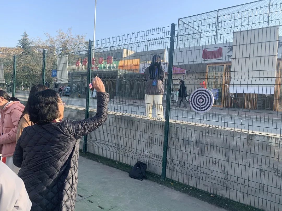 团体赛后,老师们根据自己的兴趣爱好和身体情况分别在相应赛场参加了个人赛。包括百投百中-趣味投篮比赛,百人一心-趣味飞镖比赛,百花齐放-趣味抖腰比赛和百姿千娇-趣味保龄比赛,老师们热情高涨,认真备赛,有的专心投篮,有的欢快跳跃,汗水和热情挥洒在绿茵场,幸福和欢乐洋溢在脸庞上。