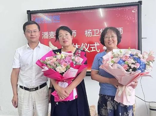 杨卫华老师回顾了在西外工作近四十载的历程,表达了对学院的深情和对讲台的眷恋,表示退休后只要学院需要,她将继续积极参与大学英语教学及学院各项工作。潘麦玲老师分享了自己在教师岗位上的成长和收获,寄语青年教师要珍惜课堂、享受课堂,希望学院可以发展得越来越好。