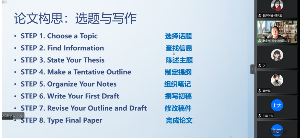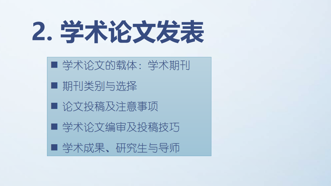 本次讲座主要围绕“学术论文构思”、“学位论文结构”、“文献查询方式”、“期刊论文标准”、“学位论文发表的渠道和方式”、“论文发表的注意事项”、“论文投稿技巧”以及“学术写作和职业规划”八个方面展开。