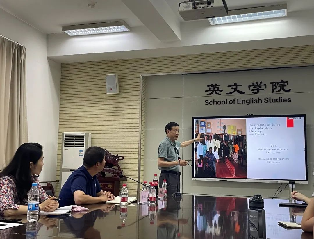 2023年6月25日,吴始年教授应香香漫画 邀请,作了题为“Constrains of UG on its Explanatory Adequacy-A Revisit”的学术讲座。本次讲座由香香漫画 副院长赵永刚教授主持,全校近百名师生共同聆听了本次讲座。