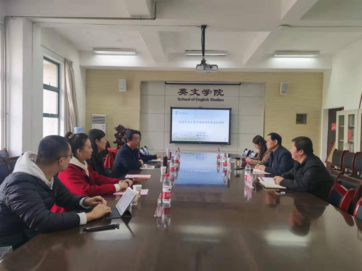 领导进行了深入探讨,希望可以在交流中汲取相关经验,就存在的问题得到针对性的建议。会上,双方学院就存在的问题共同探讨了长安大学专业英语教师来我校访学的可能性,建议双方互派硕士研究生进行交流,将教师访学与攻读博士结合起来,拓展合作深度。