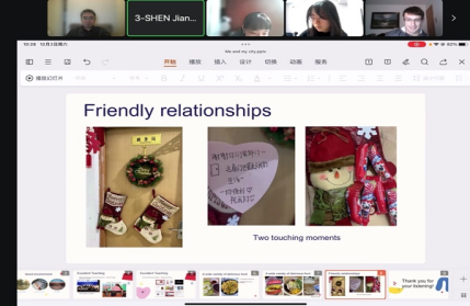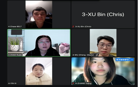 致辞结束后,双方同学进入到分组讨论环节,我方学生从西安美食、名胜古迹、节日习俗等多方面为美方学生展示了西安立体、鲜活的城市形象;美方同学介绍了自己的家庭、帕克兰学院的多彩学习生活以及他们所在的城市—美国著名城市芝加哥的城市历史,地标建筑与城市风景。最后,双方同学们回到主讨论间进行交叉提问、汇报讨论成果并对本次活动进行总结。