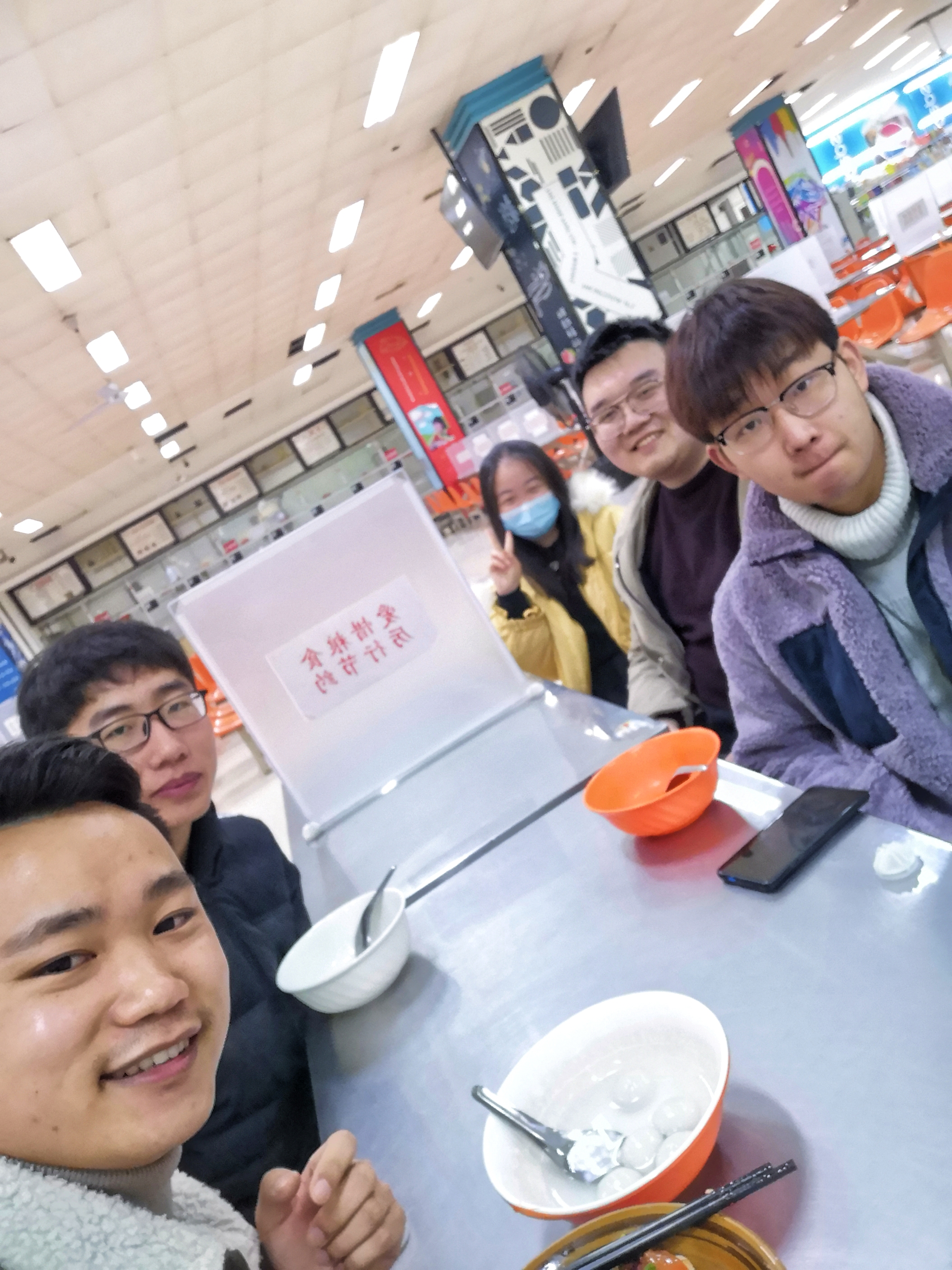 辅导员代表崔顺喆老师与同学们在学校餐厅一起品尝美味的元宵,畅聊学习、生活咯~~