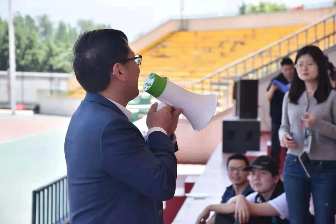 彩排后,单升军老师为大家做了动员讲话。“苦不苦,累不累,吃饭了没有?”三句话表达了单老师对同学们深深的关心,代表学院对大家的刻苦训练、辛勤付出表示真诚感谢。同时,他指出,体育锻炼符合大学生德智体美劳全面的发展要求,希望英文学子能在体育运动中享受乐趣、增强体质、健全人格、锤炼意志,希望运动们尊重对手、尊重裁判、尊重观众、尊重规则,胜不骄败不馁。最后,他表示青年就应该像八九点钟的太阳,要以良好的精神风貌和昂扬的青春斗志迎接即将到来的运动会,预祝运动员们在运动会上取得理想成绩。
