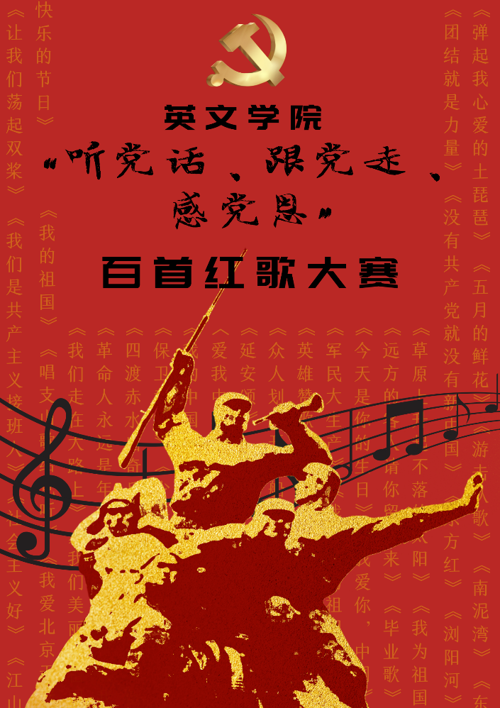 本次比赛参赛曲目来源于中宣部为庆祝中国共产党百年诞辰所推荐的100首红歌歌单,各参赛代表队将习近平总书记提出的中国共产党人的精神谱系融入代表队队名,各参赛代表队将由各辅导员带领组织排练,旨在将红歌咏唱作为学习红色党史的推动路径,让红色歌曲响彻校园,在追寻红色经典的记忆中接受红色教育、传承红色基因,感受革命精神澎湃波涛的磅礴气势,表达对党和祖国的无比热爱。