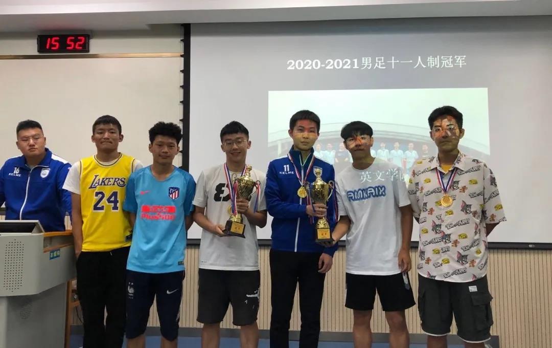 男子11人制足球联赛总决赛在校足球场上成功落下帷幕。经过激烈角逐,最终英文男足以2:1战胜艺术学院队,成功卫冕男足冠军!