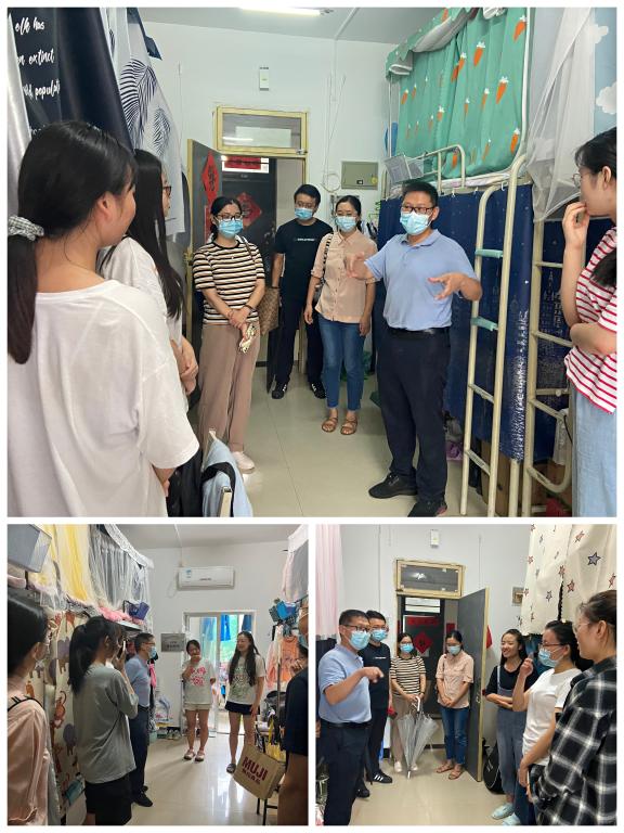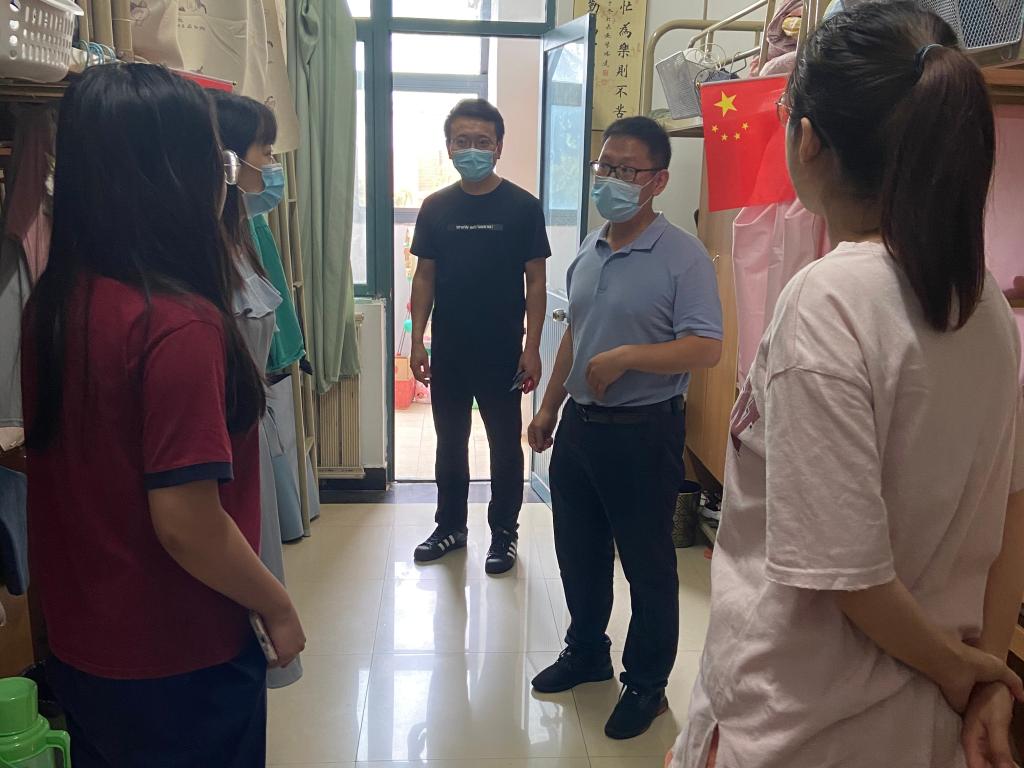 党委书记单升军、党委副书记马文静、学工办主任李哲、辅导员马捷、王子涵和杨雪芬一行6人深入学生本科、研究生宿舍,走访看望暑期在校留宿学生。