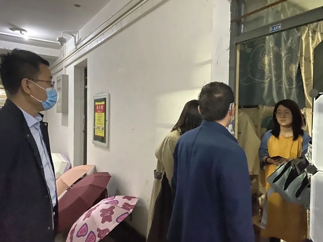 党委书记单升军、党委副书记马文静、学工秘书李哲以及各年级专兼职辅导员一行前往学生宿舍走访慰问隔离学生。