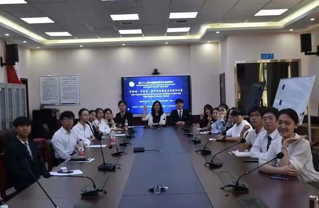 为丰富学生实践活动经历、提高学生翻译能力、增加学生对国际会议的了解,韩林烨老师带领学生进行了交替传译活动。本活动模拟了“第二十二届中国国际教育年会(CACIE 2021)”。模拟会议以“育新机,开新局,建设开放的高质量教育体系”为主题,分工明确,安排得当。