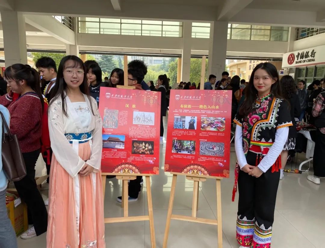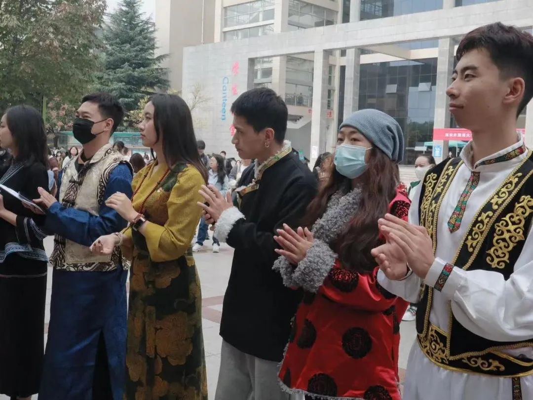 活动现场热闹非凡,参与活动的同学纷纷换上了富有少数民族风情的服饰,伴随民族音乐,向前来参观的同学介绍少数民族文化。同学们载歌载舞,以优美的舞姿拉开了活动的序幕。