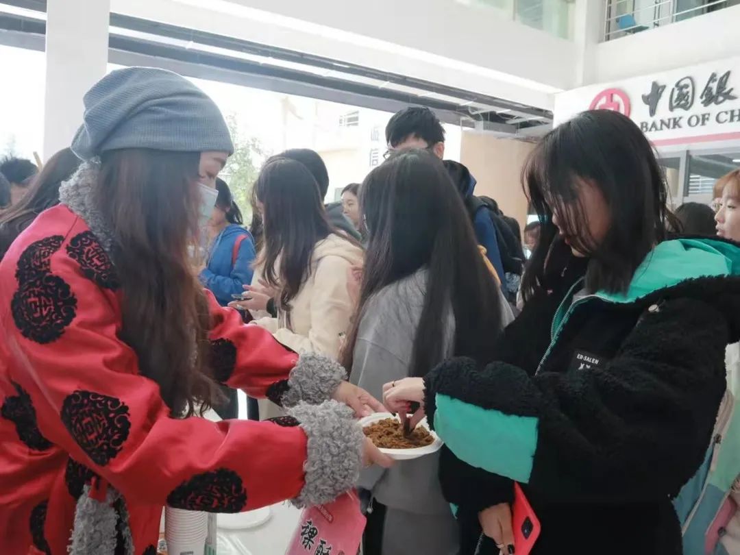 展览的现场人声鼎沸,展出的形式多种多样,有美食、工艺品、图片、乐器等等,每处展区还配有展板用以介绍各民族文化。现场提供了大量独具风味的少数民族食品,迅速吸引了大批同学的注意,大家争相品尝,富有魅力的民族歌舞表演也吸引了众多师生驻足欣赏。