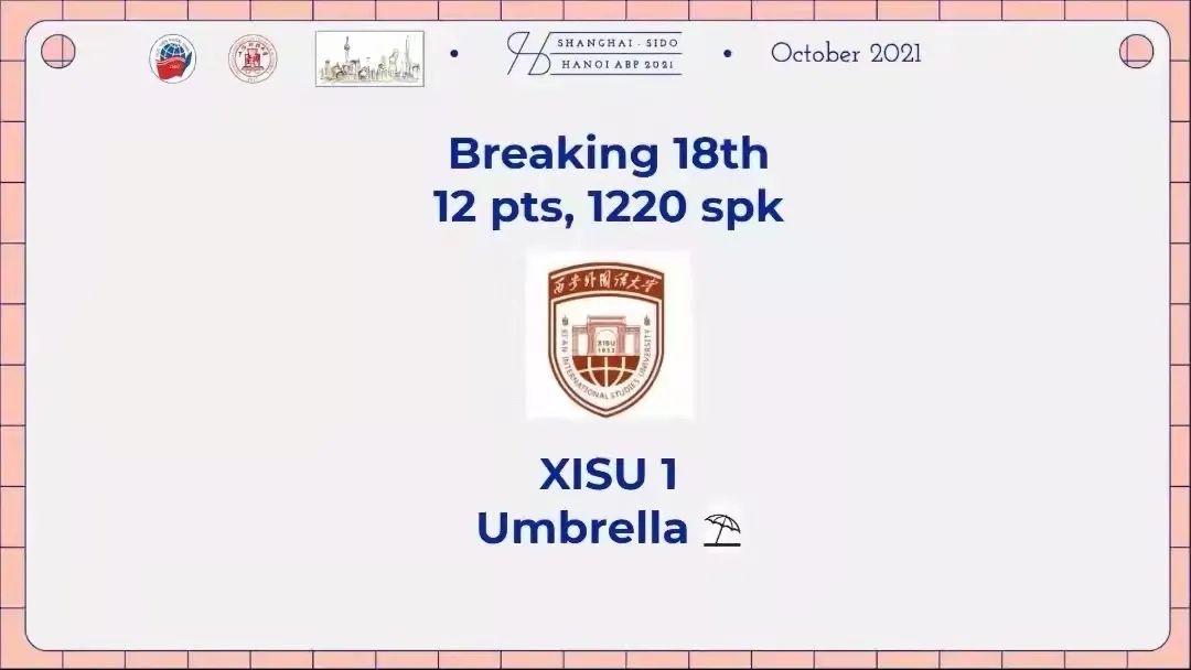 在刚刚落下帷幕的2021年亚洲英国议会制辩论赛(Asian British-Parliamentary Debating Championship,简称ABP)中,由我校英语辩论协会成员2018级吴桐和2019级邹德民组成的西外代表队成功晋级外语组16强和公开组64强,是整个西部地区唯一一支晋级的队伍,也是中国大陆晋级的十支队伍之一(西外,北外,上外,北航,上财,复旦,清华,北大,港中深,浙外)。