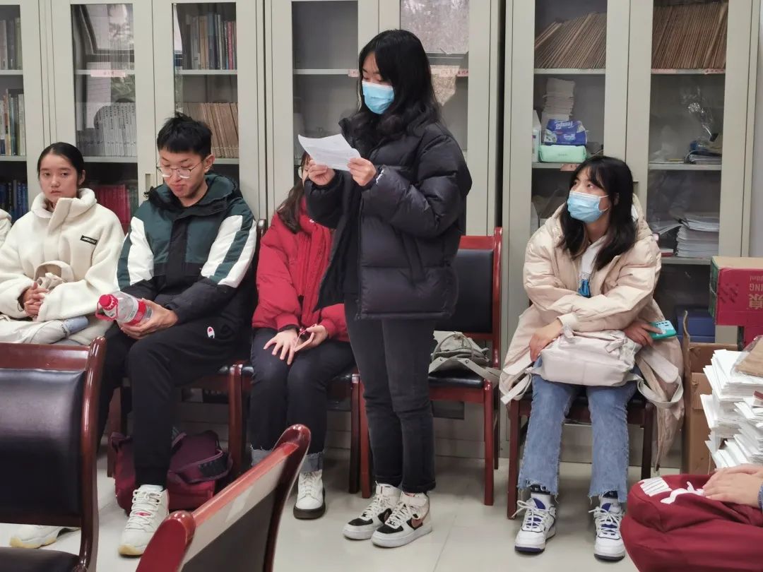 大会第二项,由各部门部长对本部门十一月的各项工作进行总结梳理,并对下个月的工作计划进行安排。指导老师李璇对各部门活动可借鉴之处进行表扬,并对工作中出现的问题依次作出了建议和指示。