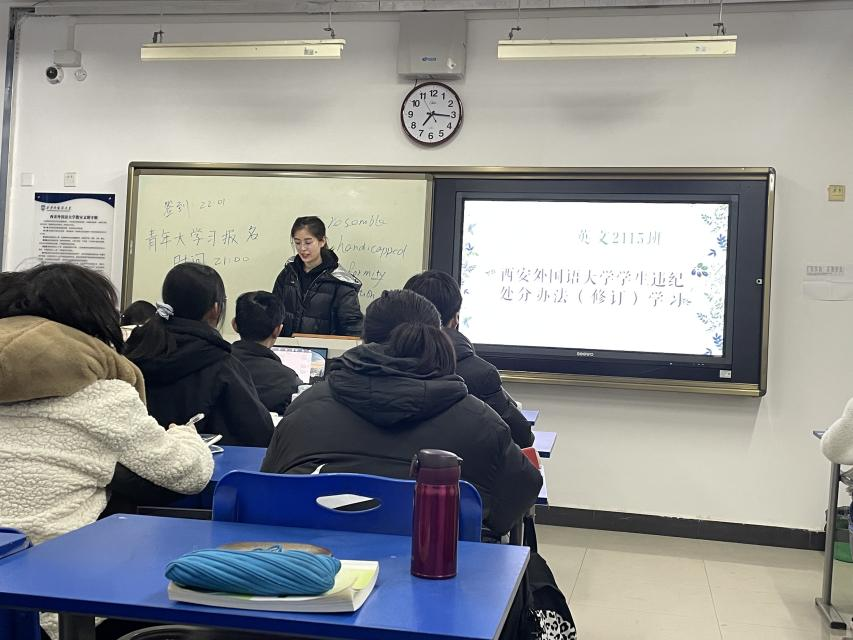 班会由辅导员由刘喆、窦一诺组织,各班班长带领本班学生,通过播放视频、PPT讲解及学生分享交流学习心得等学习方式,给同学们严明强调国家安全、民族团结、宗教信仰等问题的重要性,同时对学校日常纪律规范进行深刻的了解和学习。