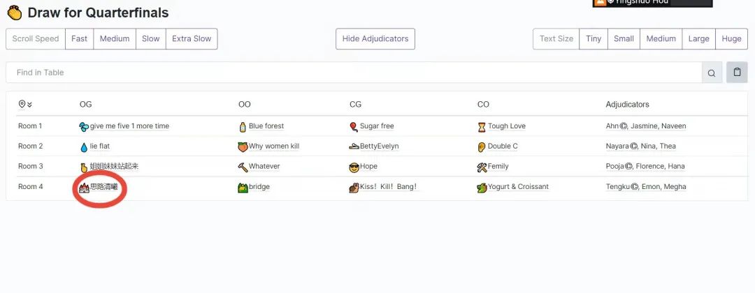 李源清组成的“思路清曦”队成功进入四分之一决赛,由高级翻译学院陆冬梅与高级翻译学院马常璐组成的“sts rookies”队成功进入八分之一决赛。