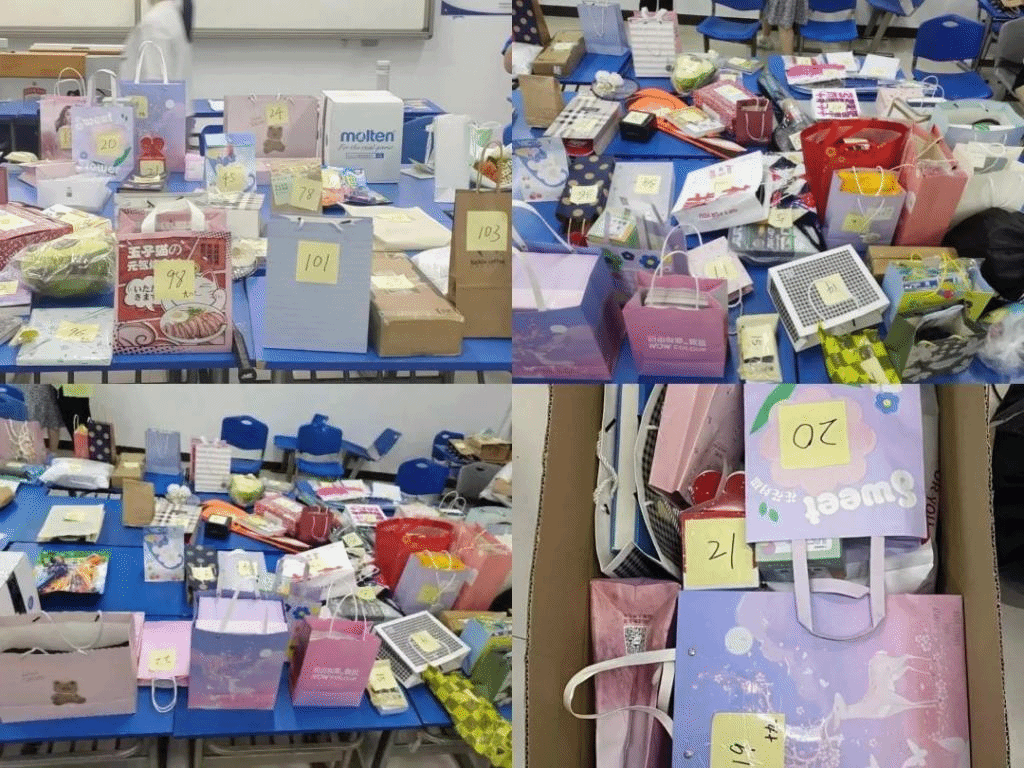 6月16日,分享•爱志愿队收集了同学们精心准备的礼物,并进行统一编号与打包。