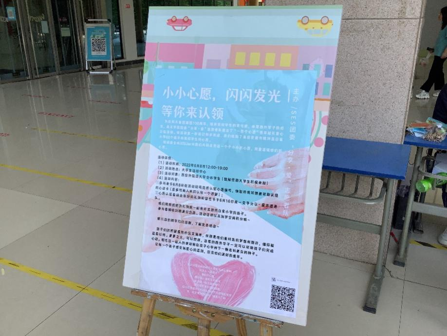 6月8日,在分享•爱志愿者队的组织下,白家小学孩子们的心愿画作在大学生活动中心展出,同学们在现场积极认领画作,帮助实现白家小学孩子们的心愿。