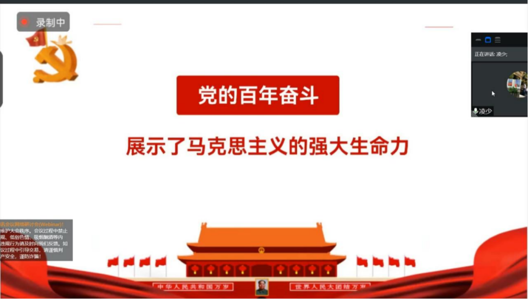 第二讲《党的百年奋斗重大成就The Major Achievements from the Party’s Endeavors over the Past Century》由学院党委委员何瑜主讲,她首先用流利的英语生动讲述了夺取新民主主义革命伟大胜利、完成社会主义革命和推进社会主义建设、进行改革开放和社会主义现代化建设、开创中国特色社会主义新时代等四个历史时期的重大成就。接下来她以扎实的专业素养逐一讲解党的专有名词,带领学生深入学习党言党语,及时掌握党的知识;最后她通过学习强国的红色资源,强调作为新时代新青年要善于用好手头的学习工具和学习资源,自觉主动加强党的教育和知识的熏陶,努力用实际行动践行当代青年的历史使命和责任担当。