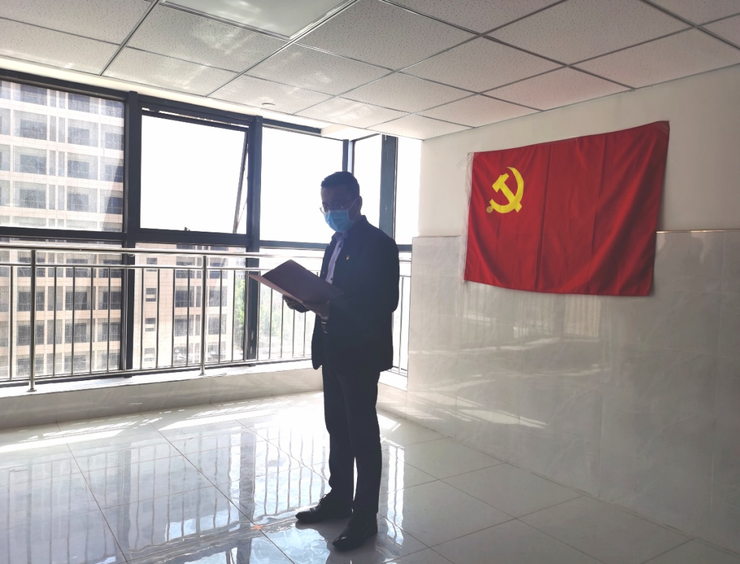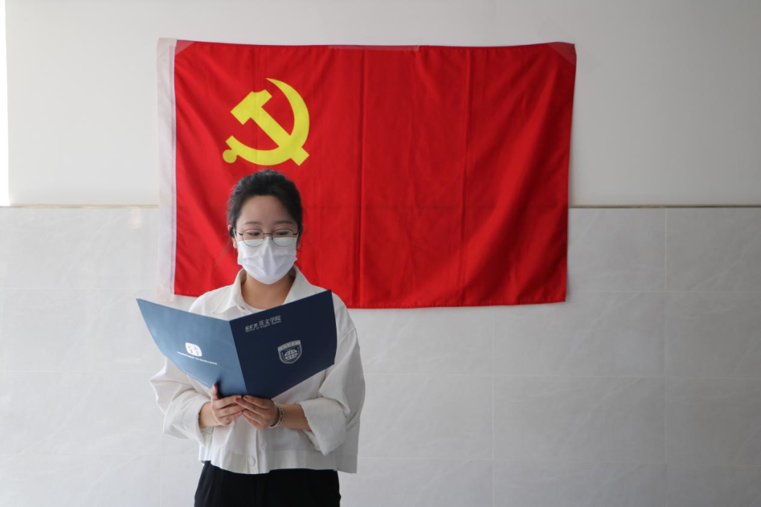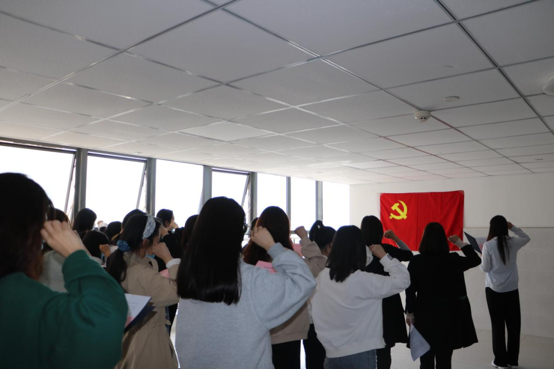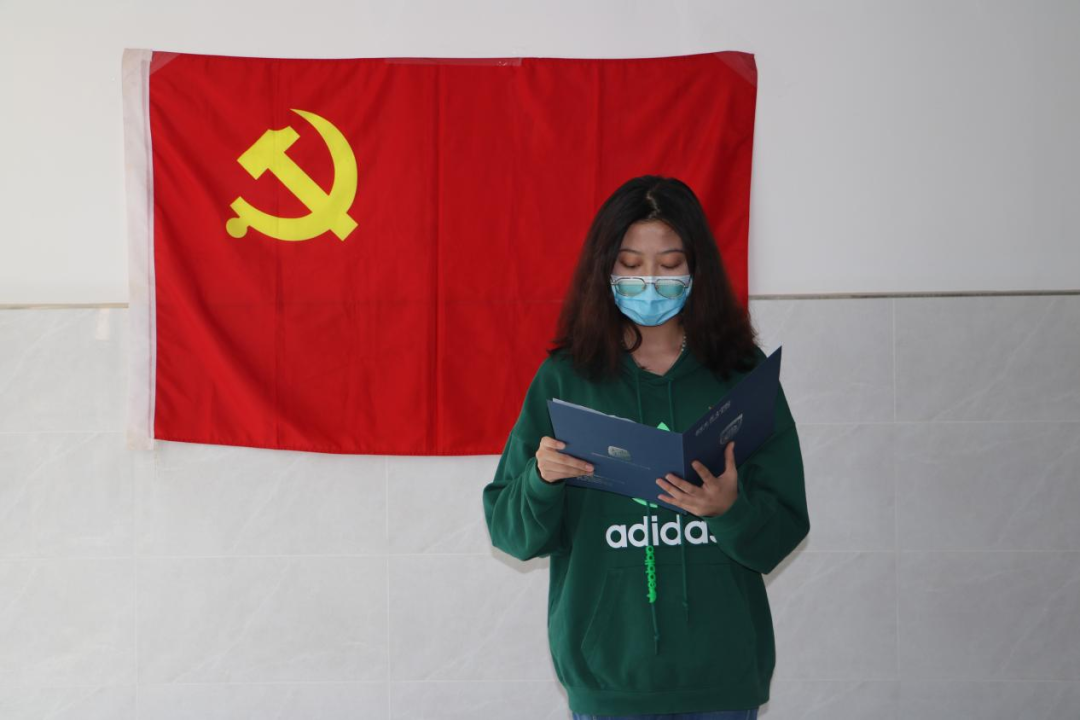 接下来,全体党员在研究生第六党支部书记冀婷的领誓下,面向鲜艳的党旗,集体宣誓,发出了“亮党员身份,树先锋旗帜,做先进表率的青年声音”。