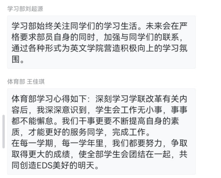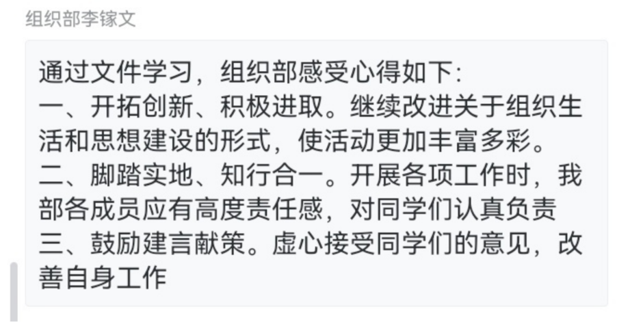 最后,在学习文件和精神过后,各部门也对文件中所传达的精神有所领悟,纷纷发表了自己的理解与看法: