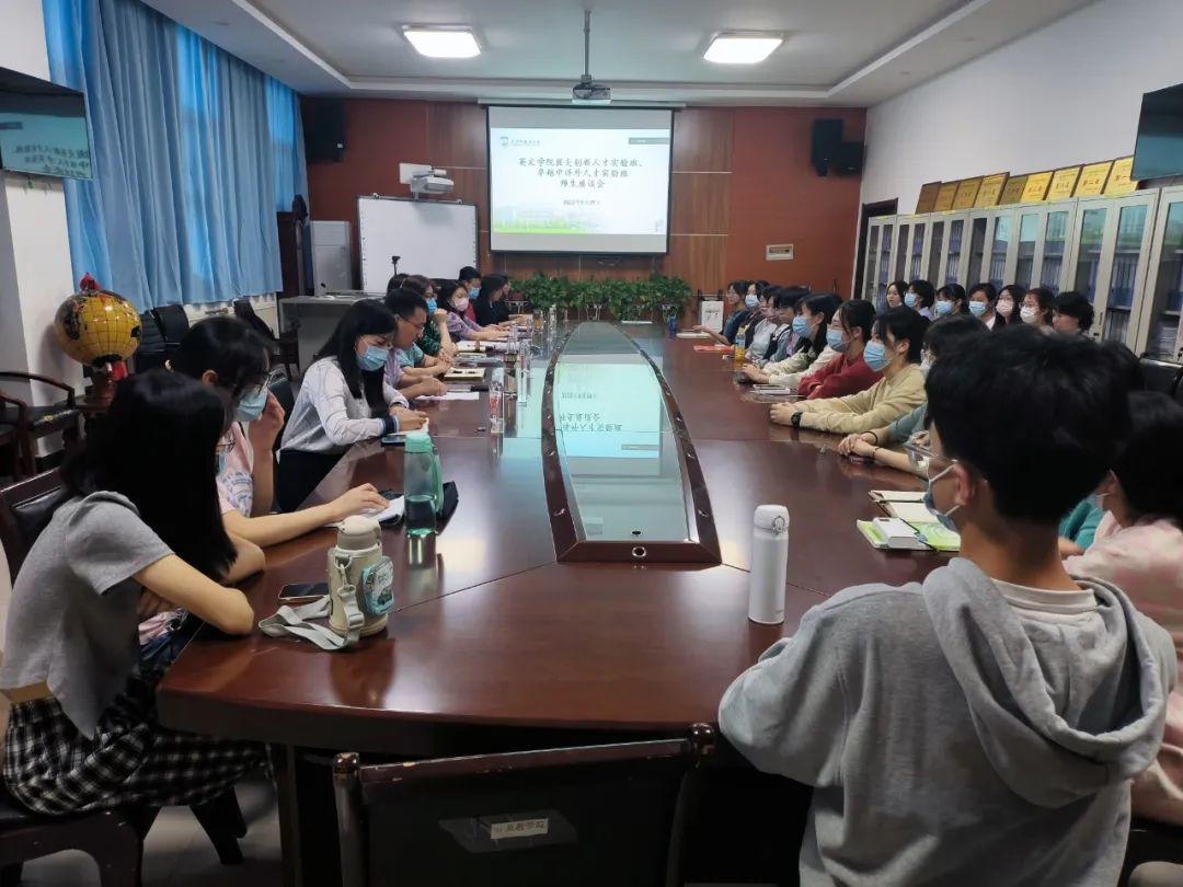 于2022年9月29日下午在教学楼H107会议室召开2022级拔尖创新人才实验班和卓越中译外人才实验班师生座谈会。党委书记单升军、副院长雷茜、教师代表王满良、王冬菊、苗淼、石琳霏,教学秘书何姗,辅导员黄星元、王子涵以及两个实验班全体同学参加了座谈会。会议由党委副书记马文静主持。