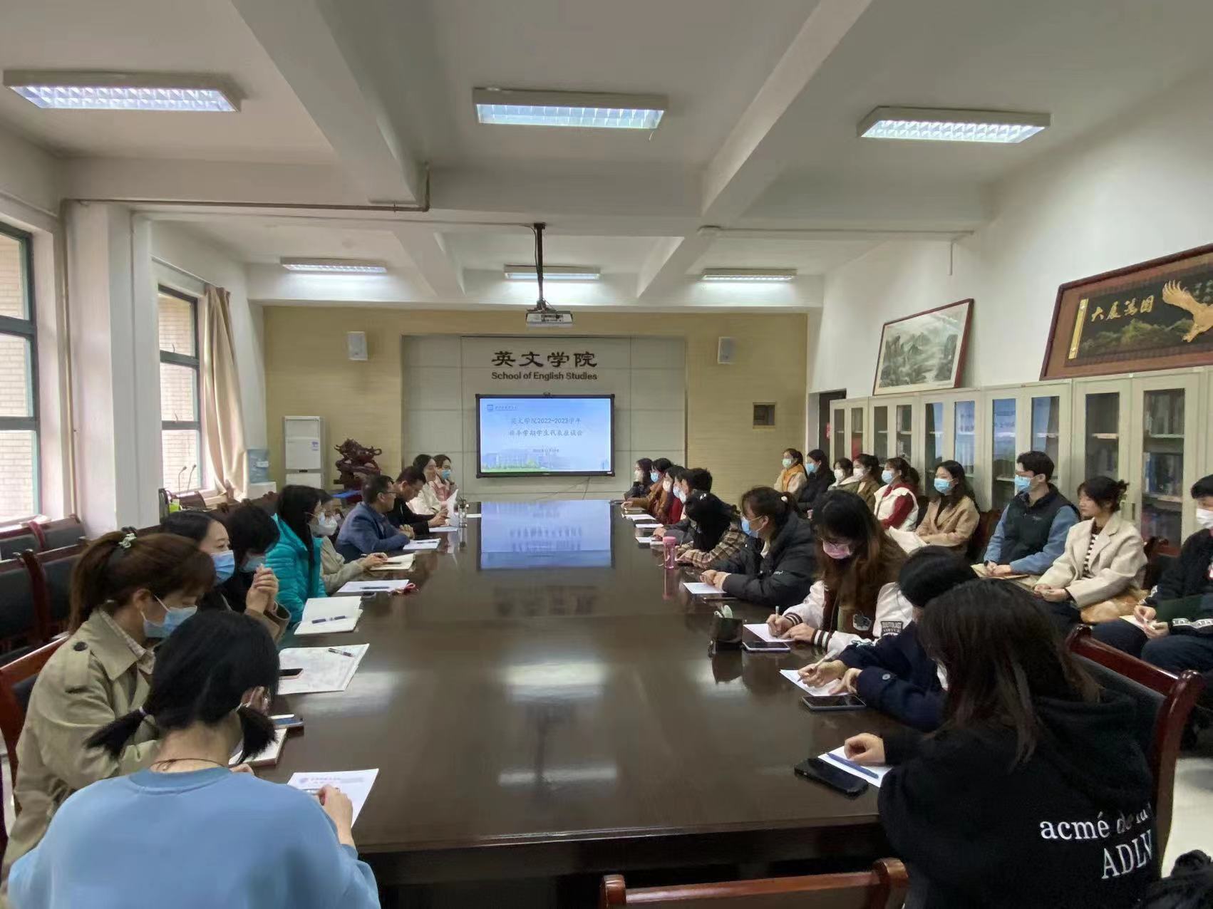 在教学楼G区209会议室召开2022-2023学年秋季学期学生代表座谈会。院党委书记单升军、党委副书记马文静、学院综合办、教学办、学工办、研究生教学办、大英教学办、各年级辅导员代表、学生代表等参加会议,会议由学工秘书高洋主持。