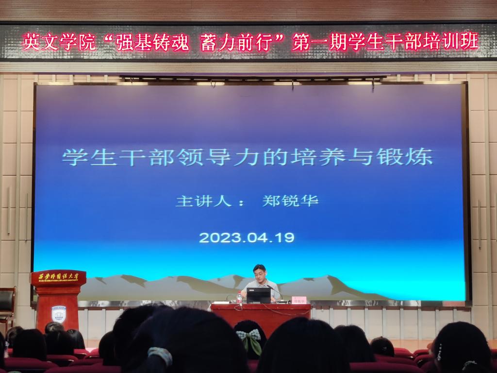 于JA111举办“强基铸魂 蓄力前行”第一期学生干部培训班开班仪式暨首场专题讲座培训会。首场专题讲座邀请校党委员、统战部部长郑锐华主讲,学院党委书记单升军、副书记马文静、全体辅导员及参训学生干部参加,会议由马文静副书记主持。
