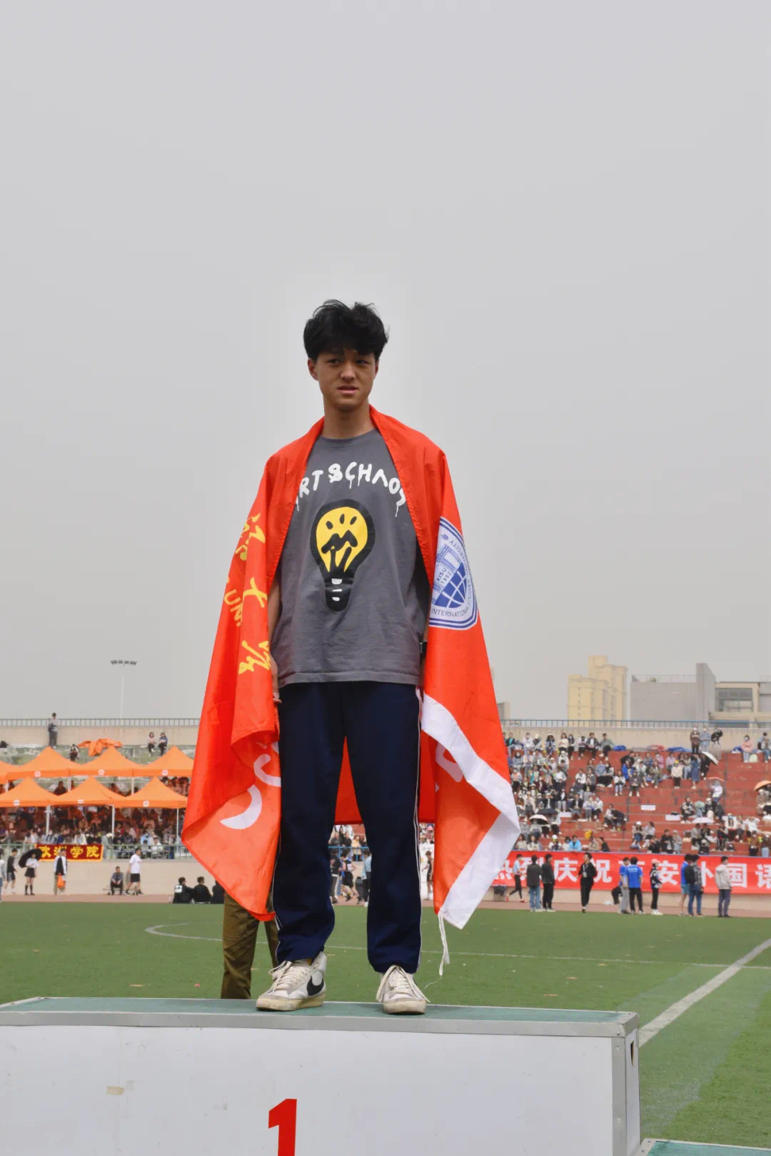 在本届运动会中取得优异的成绩,不仅是各位运动员辛勤拼搏的结果,同样也离不开每一位老师和同学们的加油呐喊以及各位志愿者同学的无私付出。